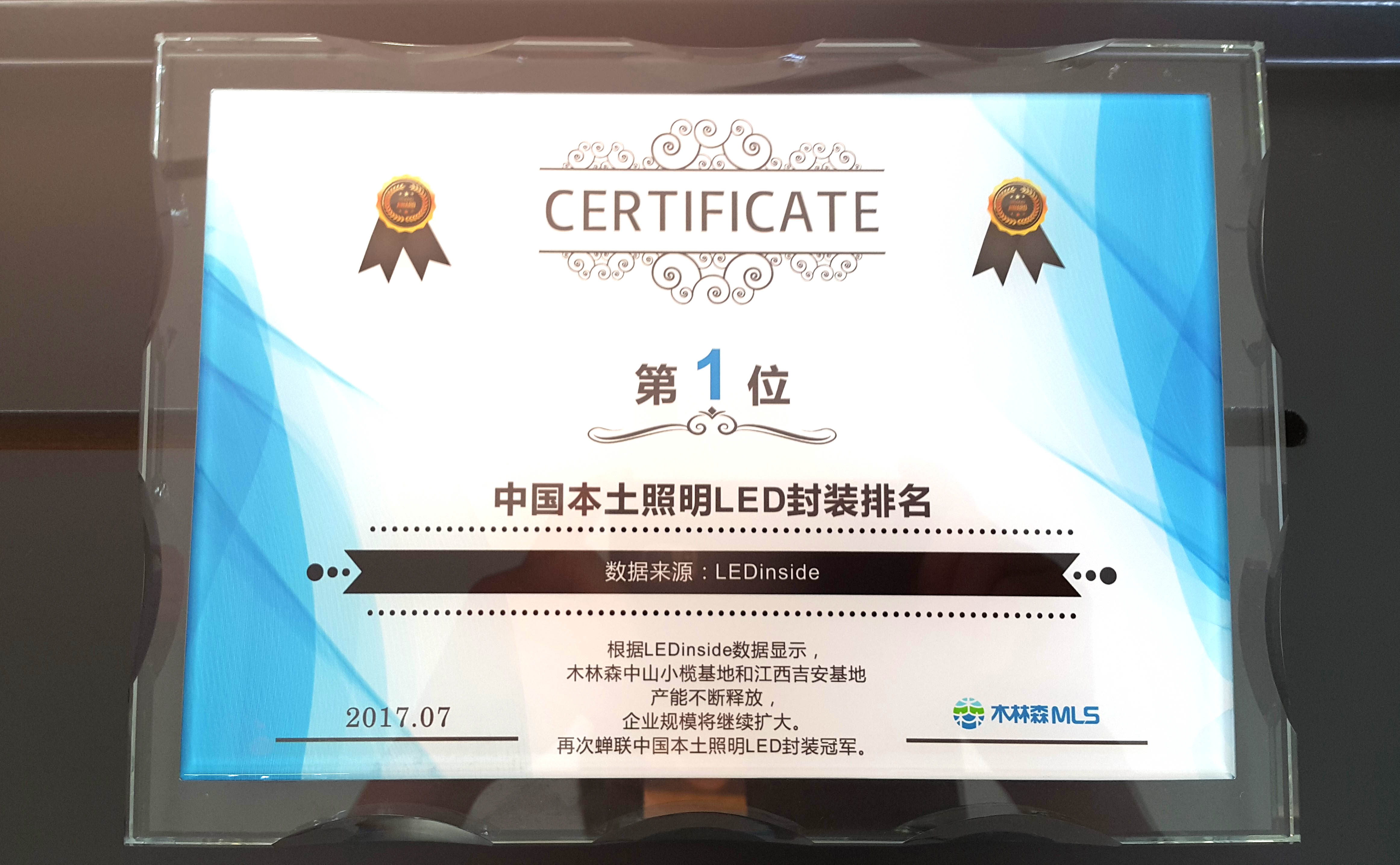 LEDinside数据显示,2017年中国照明LED封装市场规模达到259亿人民币,同比增长9%。本土厂商也逐渐成爲照明LED的主要供应商,前十大厂商中,木林森稳居第一,鸿利智汇紧随其后,天电光电第三。